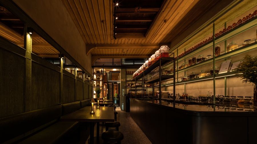 POTONG consists of five different floors, each with its own story. The “old meets new” rustic and contemporary design ensures most of the building’s historic structures remain intact. Interior highlights include a 2-man wooden elevator once used by Chef Pam’s family to transfer secret medicine recipes and ingredients between floors. POTONG at Chinatown Bangkok - A Rising Star at TOP25 Restaurants BangkokThe first-floor bar is decorated with jars used for fermenting soy sauces and vinegar that evoke the building’s history as a pharmacy and used to be the storefront for the POTONG dispensary. It is now POTONG Sino Bar, retaining the beauty of a 100-year-old wood ceiling.