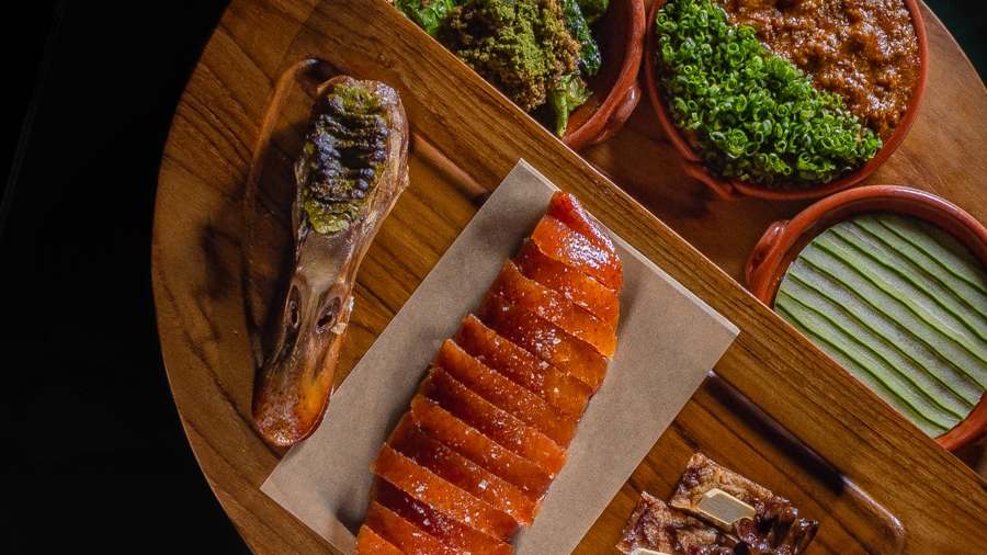 Signature highlights include the 14-Day Aged Duck, masterfully dry-aged to enhance umami depth and aromatic spice, and the Pad Thai, deconstructed into refined layers of shrimp and local Nakhon Si Thammarat influences. The journey moves through courses like black chicken with Chinese herbs, scallop with satay sauce, and desserts such as Heritage — pandan, Thai-tea nama chocolate, and mango coconut-sesame — each celebrating balance and transformation.