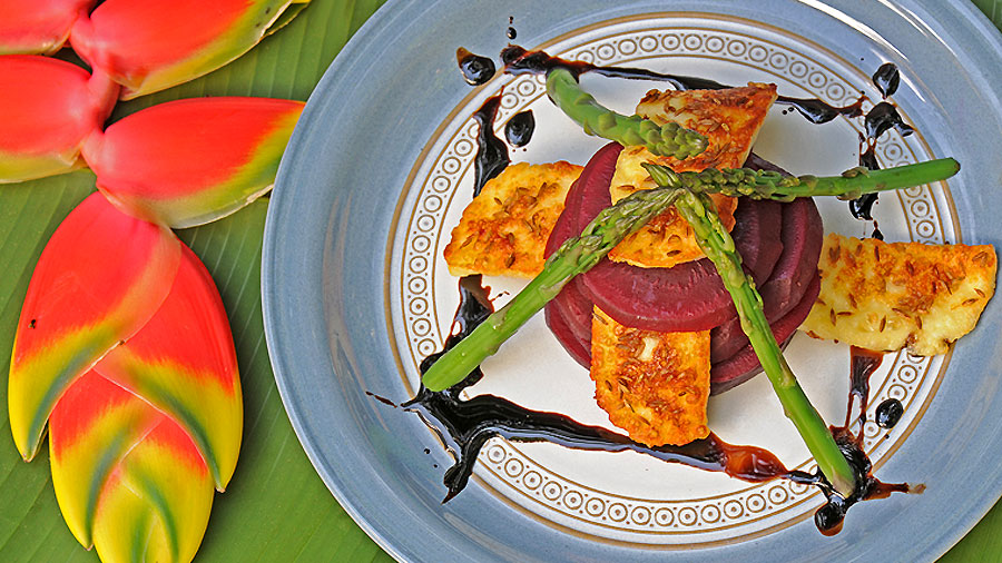 Fresh beetroot and asparagus salad with cumin crusted haloumi and balsamic syrup. This beetroot asparagus salad is always perfect before or after a safari and full of fresh, delicious flavour to serve to guests during the all year round.