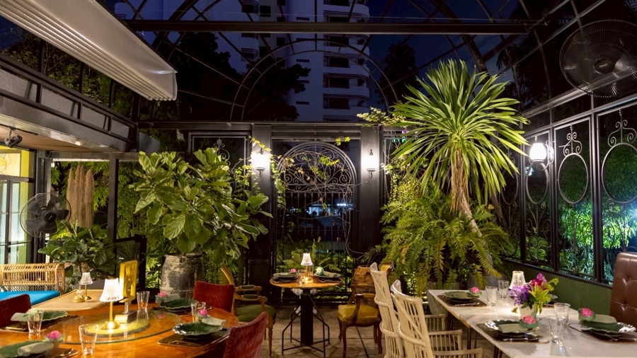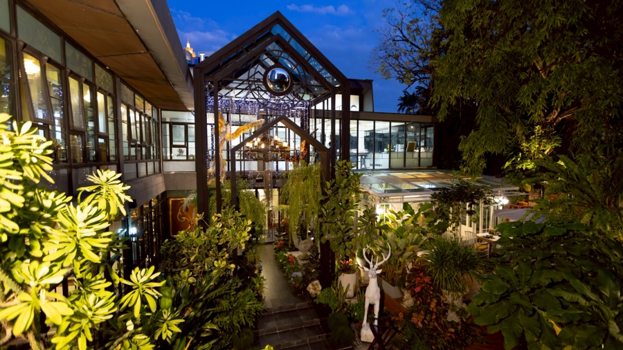 Surrounding the restaurant, his landscape design inspired by the mythical Himmapan forest extends the vision into nature, with lush greenery and artistic landscaping that transform Kinnaree into a sanctuary-like escape in the heart of Sukhumvit, Bangkok.