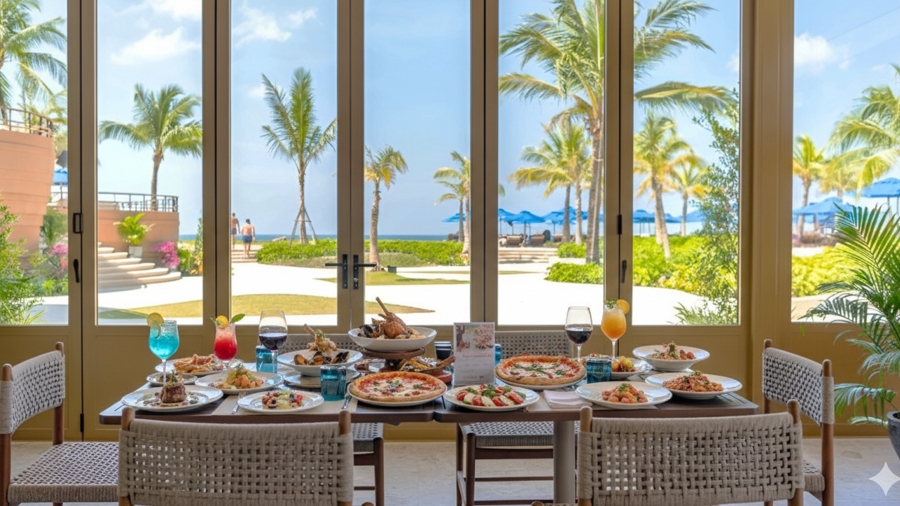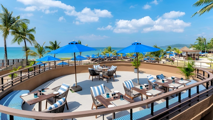 Guests may choose to dine in the cool comfort of the air-conditioned interior or relax outdoors where the sea breeze gently sets the mood. For the most captivating experience, we recommend our upper deck — a beautifully tiered vantage point where every table enjoys a front-row view of the sunset over the ocean, turning each bite into a moment to savour.
