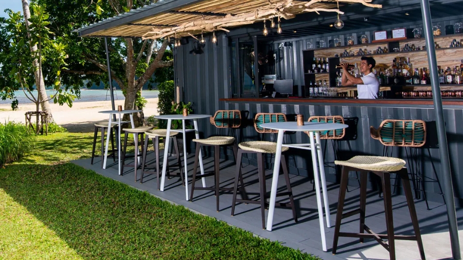 Open Kitchen Experience: Guests can watch the cooking process in the open shipping container-style kitchen.