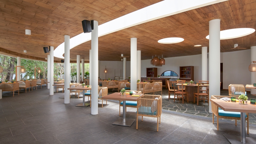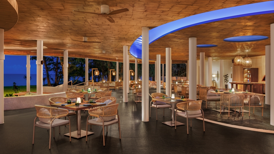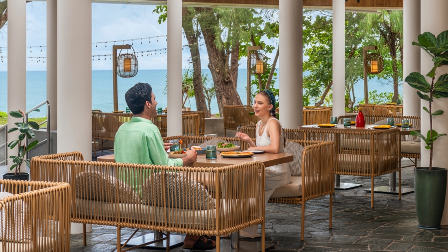 Ocean Kitchen, set on Mai Khao Beach, offers Mediterranean cuisine with an extensive wine list, modern minimalist design, and daily sunset views by the sea.