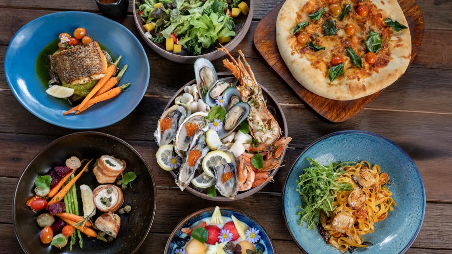 Guests can enjoy vibrant salads, tapas and deli boards featuring artisanal cheeses, cold cuts and smoked seafood. Main dishes highlight premium seafood such as tuna steak and grilled local fish, complemented by international favourites including handmade pastas, pizzas and grilled specialties.